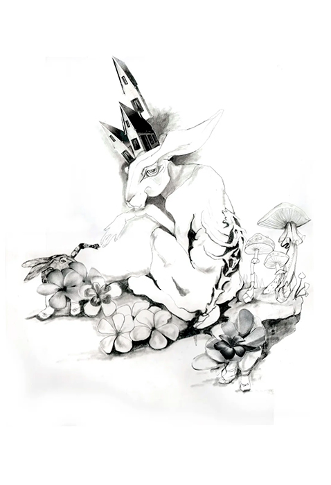 Alegorías visuales, un toque de ironía y paisajes casi mágicos me permiten construir una narrativa que no busca respuestas, sino más bien preguntas abiertas sobre cómo habitamos los espacios, internos y externos, en constante cambio.